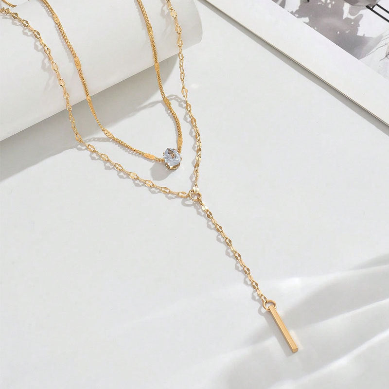 Crystal Lariat Necklace Set - 18K Gold Plated Layered Necklace
