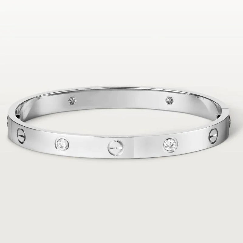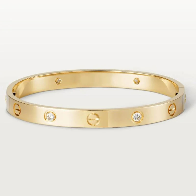 Looking for a timeless piece to add to your jewelry collection? Look no further than our Love Bracelet, inspired by the iconic design we all know and love. Crafted with 18k gold plating, this bracelet is guaranteed not to tarnish, so you can wear it day in and day out without worrying about losing its shine. Whether you're dressing up for a special occasion or just adding a touch of elegance to your everyday look, this bracelet is the perfect accessory. Treat yourself or surprise a loved one with a gift they'll cherish for years to come. Make a statement with our Love Bracelet and show the world your impeccable taste in fashion.