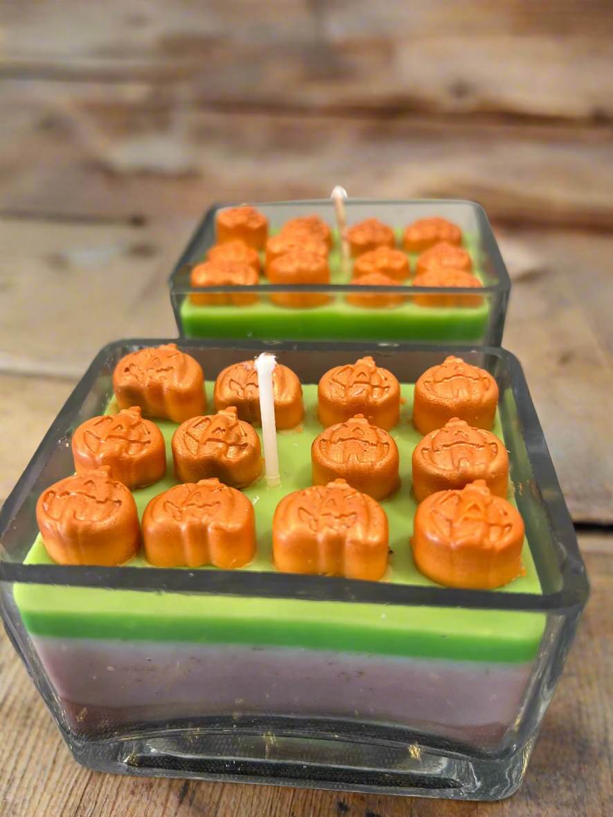 🕯️✨ Light up spooky season with our Pumpkin Patch Candle! Layered in festive fall colors and topped with mini jack-o-lantern pumpkins, this hand-poured candle brings cozy vibes and a touch of Halloween magic to any space. 🎃 Perfect for décor, gifting, or setting the mood on chilly autumn nights.