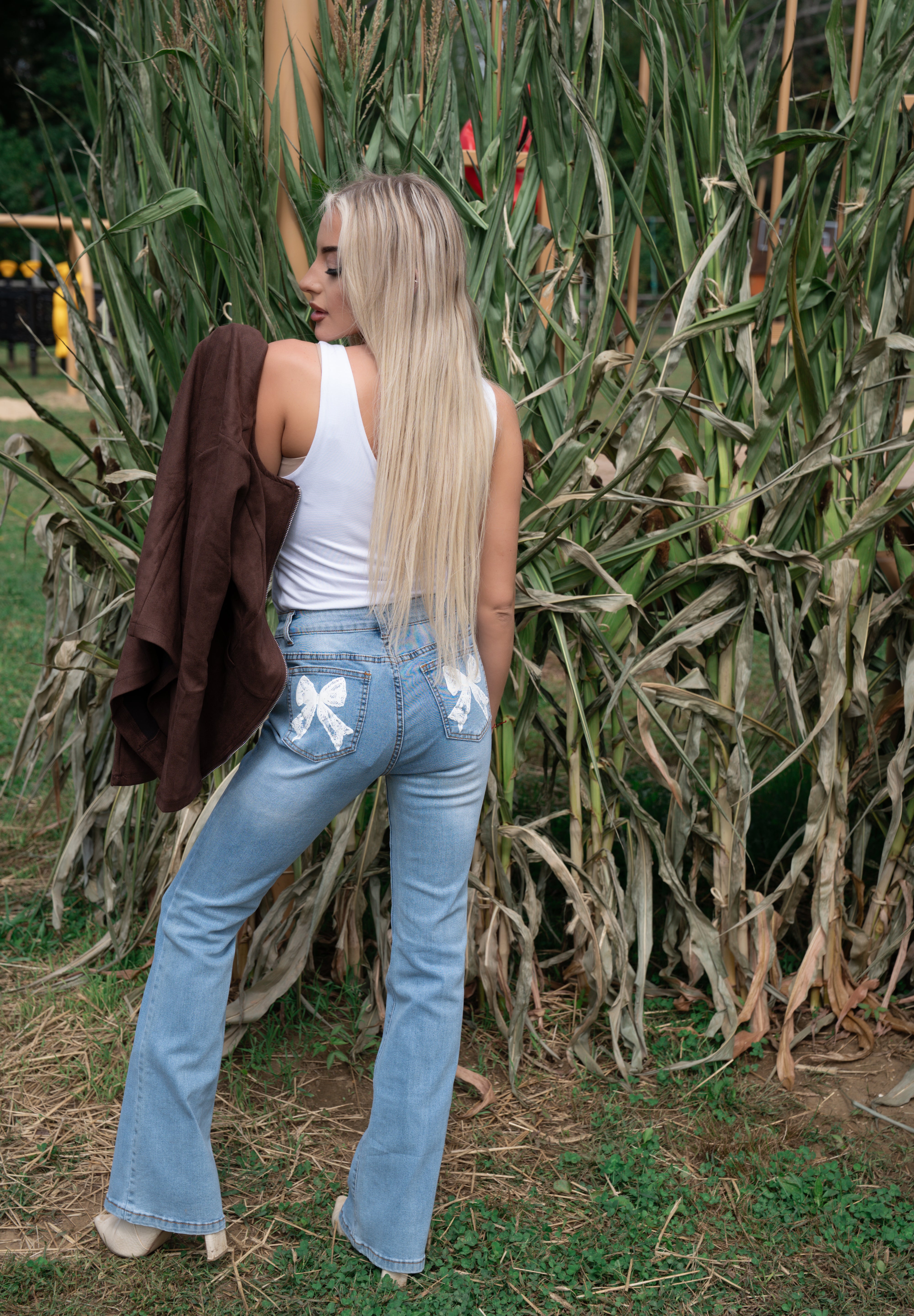Flare Jean with Bow Tie Graphic Back Pocket
