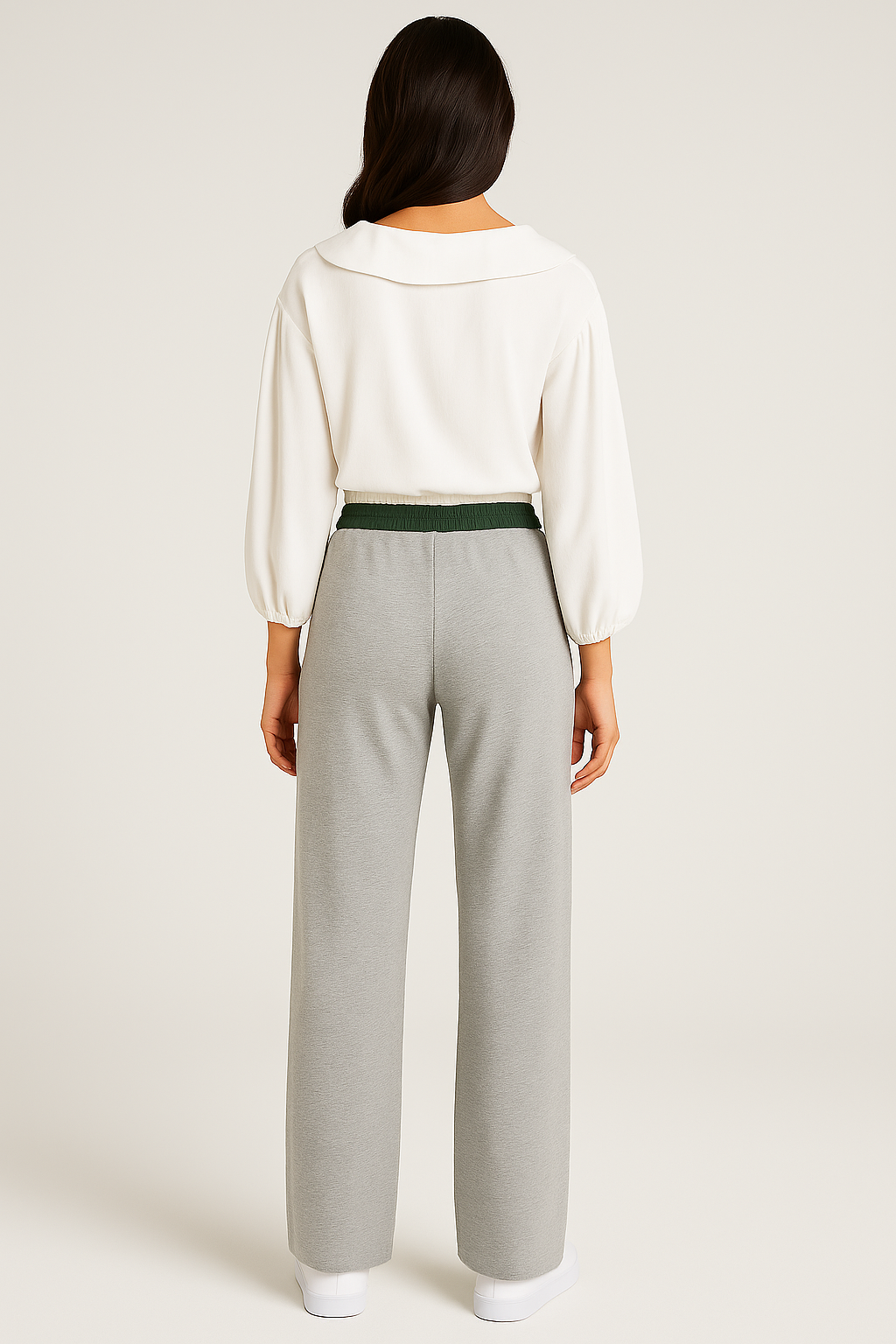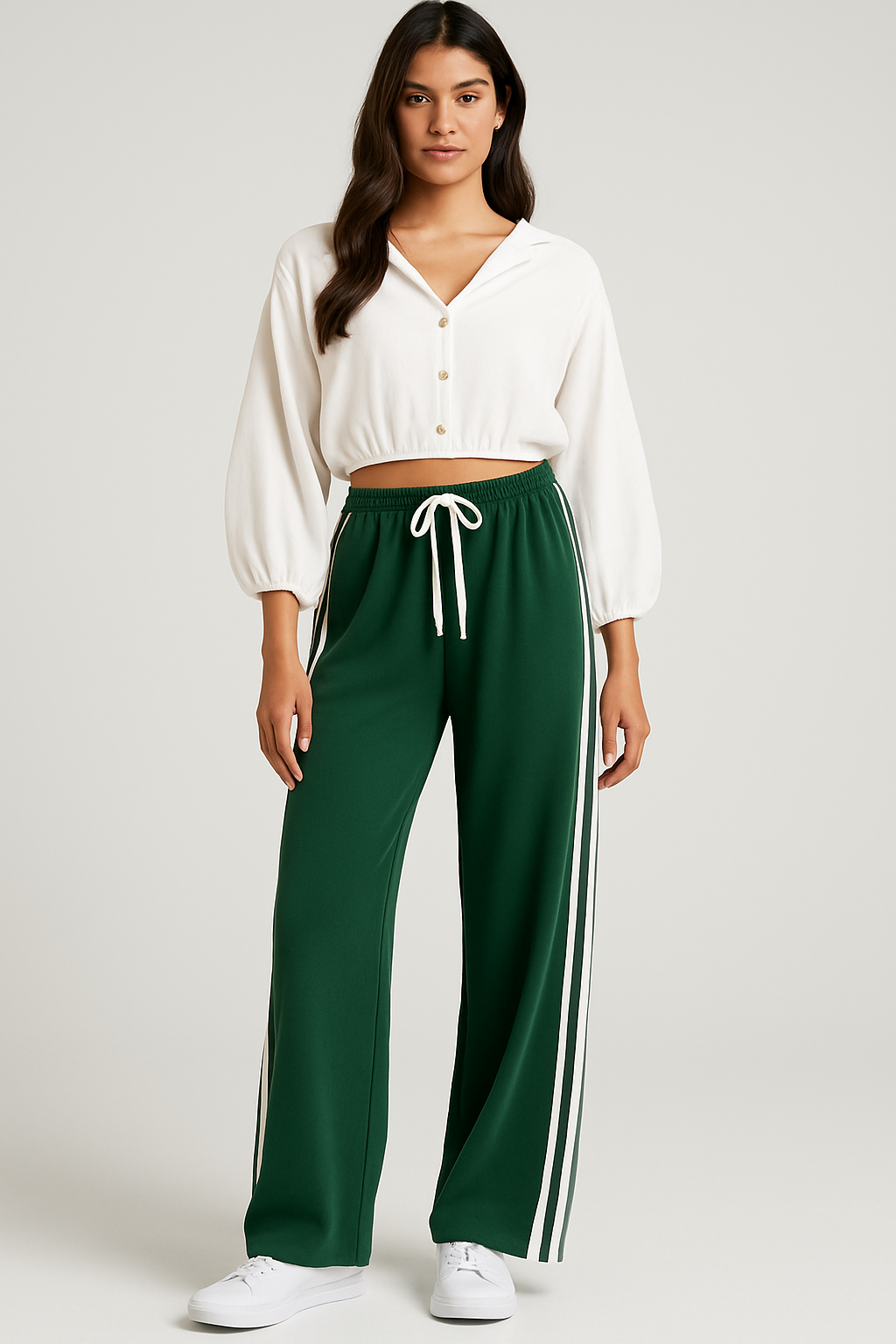 Elevate your off-duty style with these two-tone wide leg sweatpants featuring a bold green front and sleek grey back with sporty white stripes. Designed for all-day comfort with a relaxed fit and adjustable drawstring waist, they’re the perfect blend of athleisure and street style.