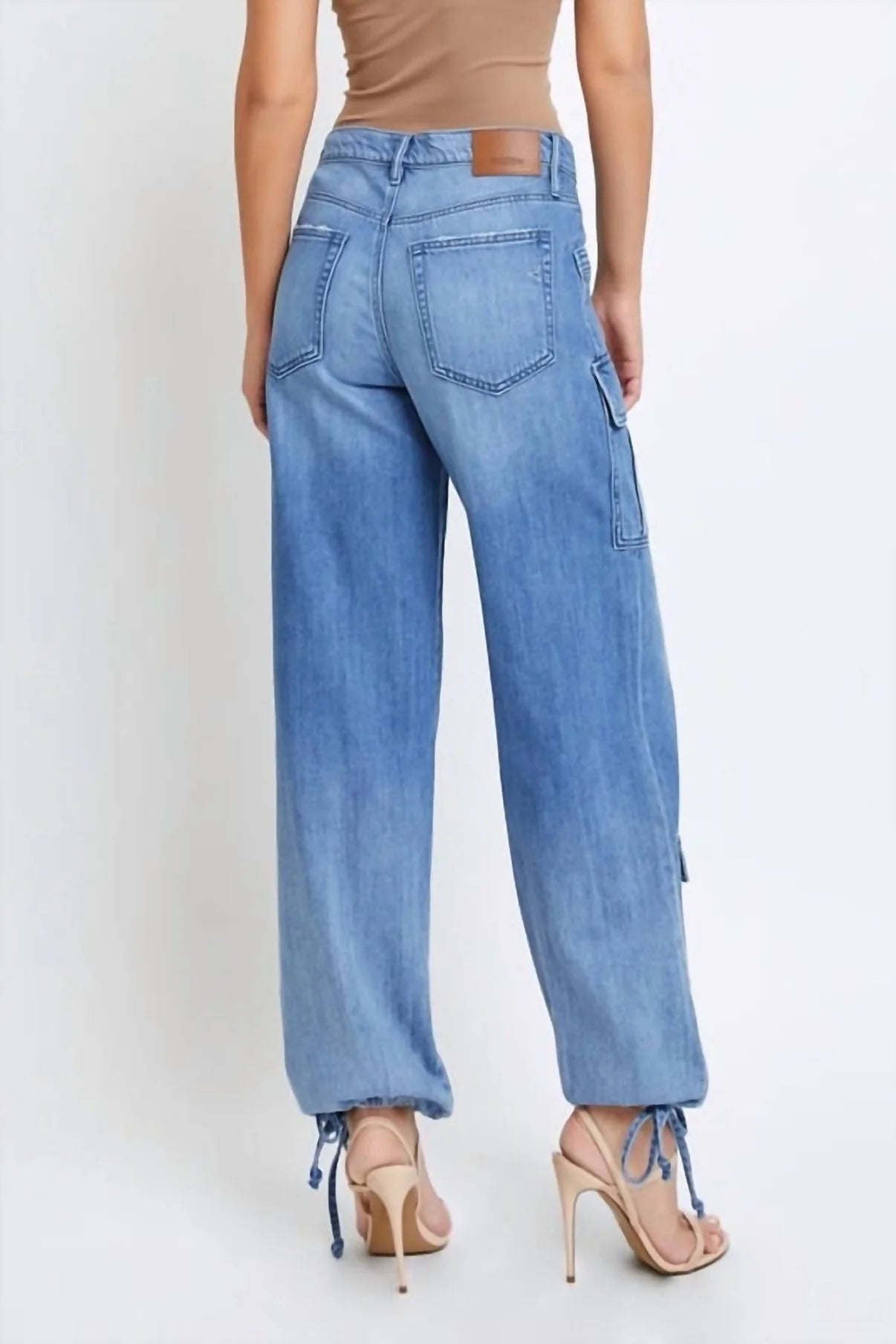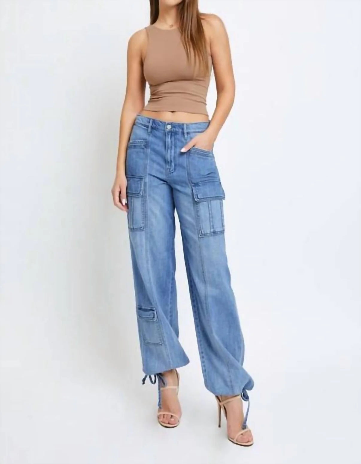This classic straight leg jean has a perfect fit and goes with just about everything. Introducing the Women's Alyx Cargo Baggy Pants by HIDDEN, perfect for the streetwear enthusiast seeking both style and comfort. These medium wash pants are crafted from a blend of 73% Cotton and 27% Rayon, offering a relaxed fit with a mid-rise waist and button closure.