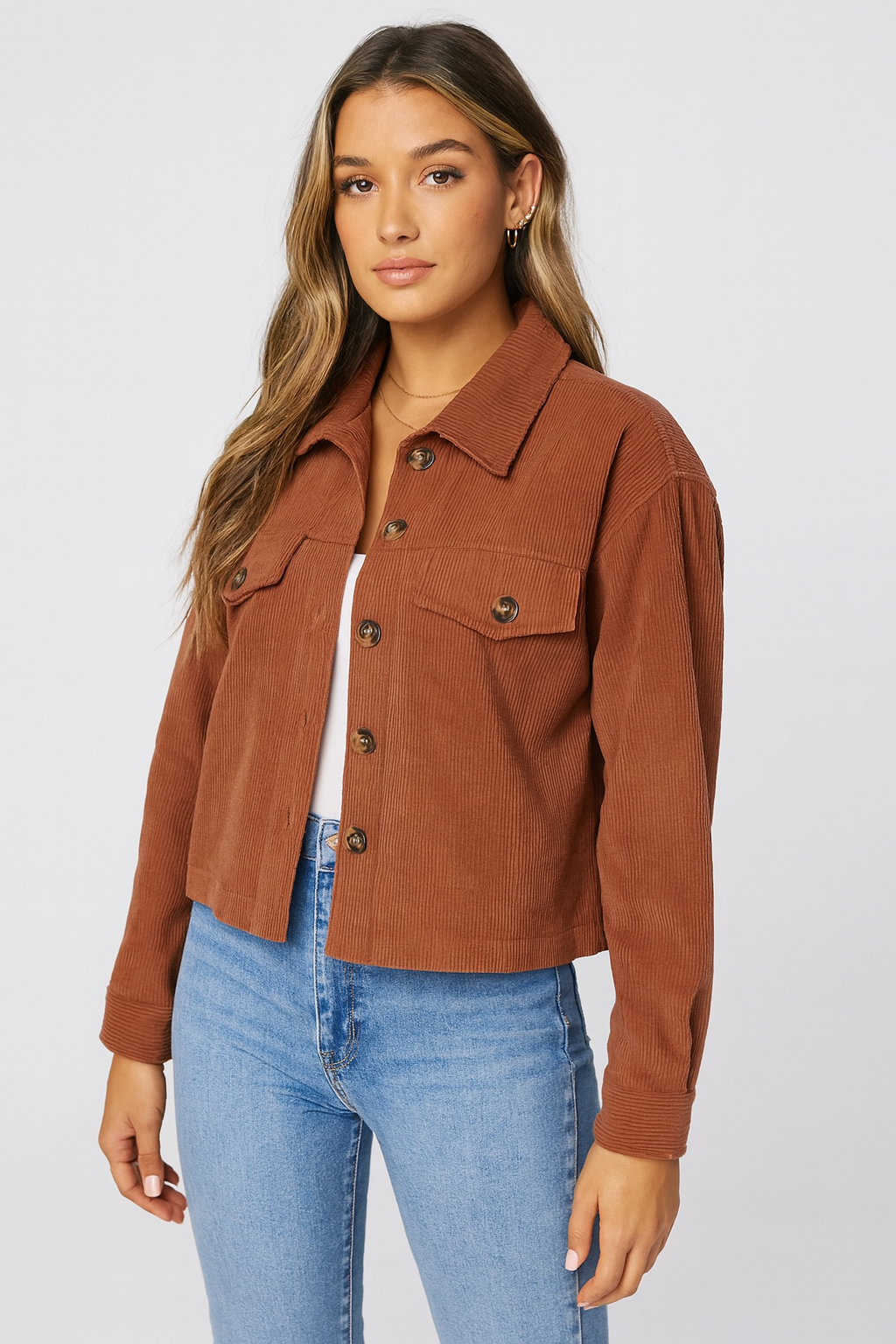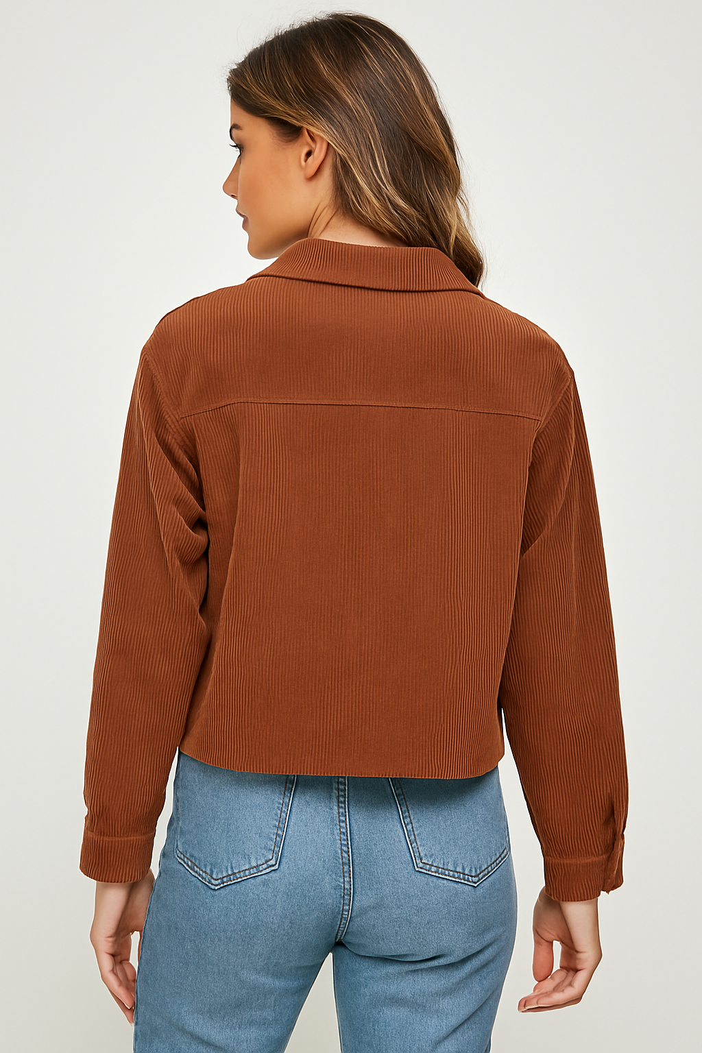 Cropped Brown Corduroy Jacket – Button-Up Shacket Style