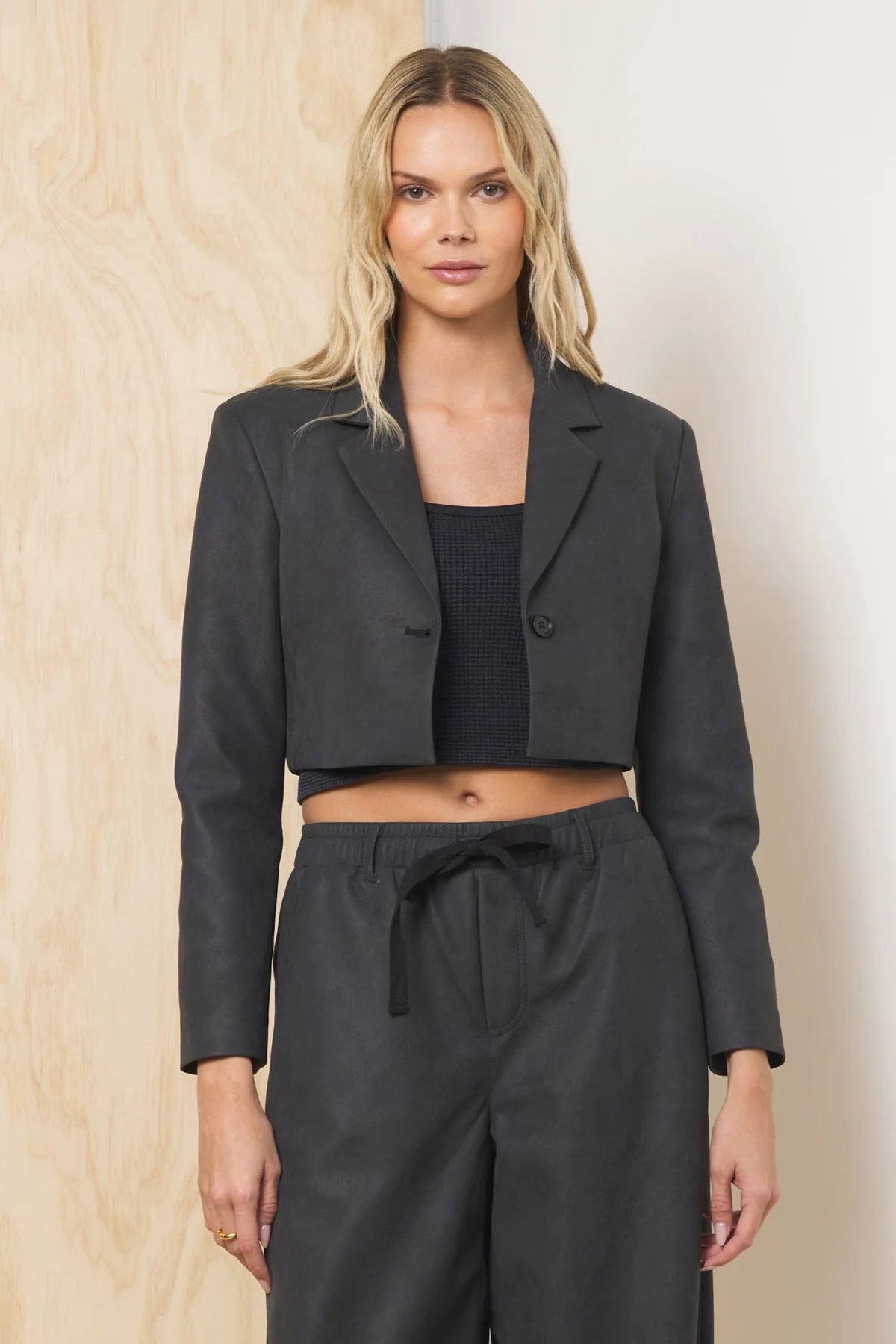 The Faux Leather Blazer s a stylish and versatile addition to any wardrobe. Made from premium faux leather, it offers the sophisticated look of leather with a cruelty-free approach.