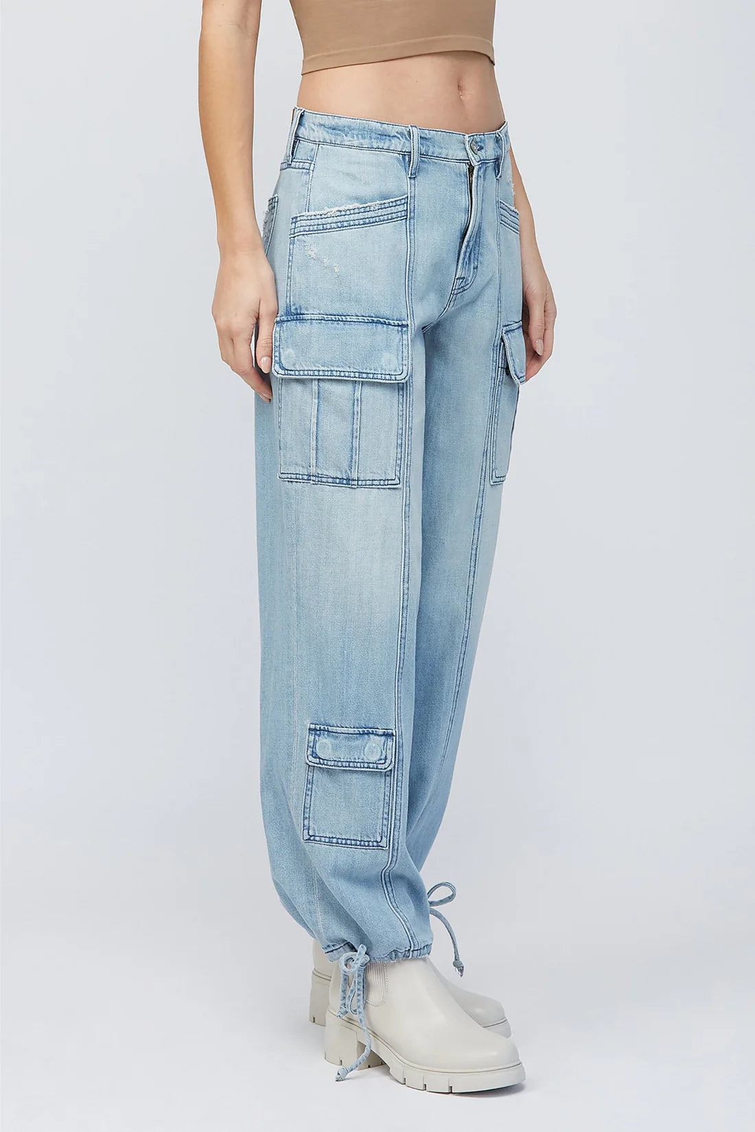 This classic straight leg jean has a perfect fit and goes with just about everything. Introducing the Women's Alyx Cargo Baggy Pants by HIDDEN, perfect for the streetwear enthusiast seeking both style and comfort. These medium wash pants are crafted from a blend of 73% Cotton and 27% Rayon, offering a relaxed fit with a mid-rise waist and button closure.