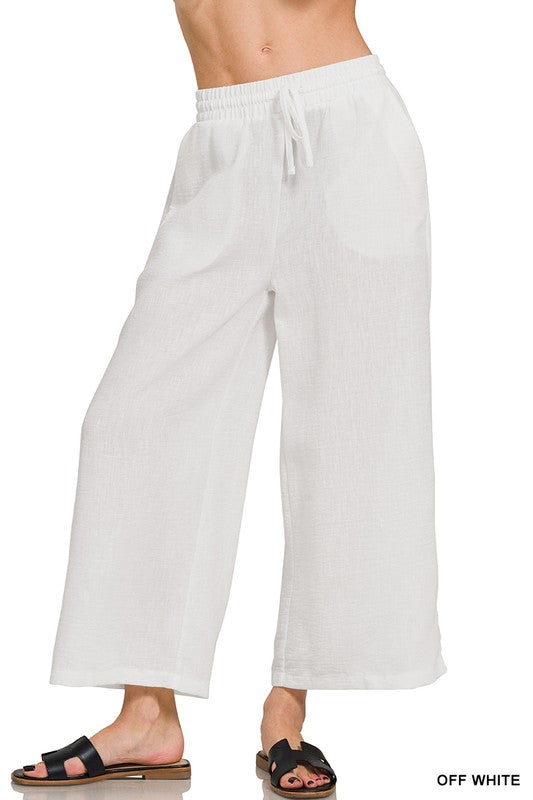 Embrace effortless elegance with these woven crepe wide-leg pants by Zenana. Featuring a comfortable elastic waistband with adjustable drawstring and a flowing wide-leg silhouette, these pants are perfect for creating chic, relaxed looks.